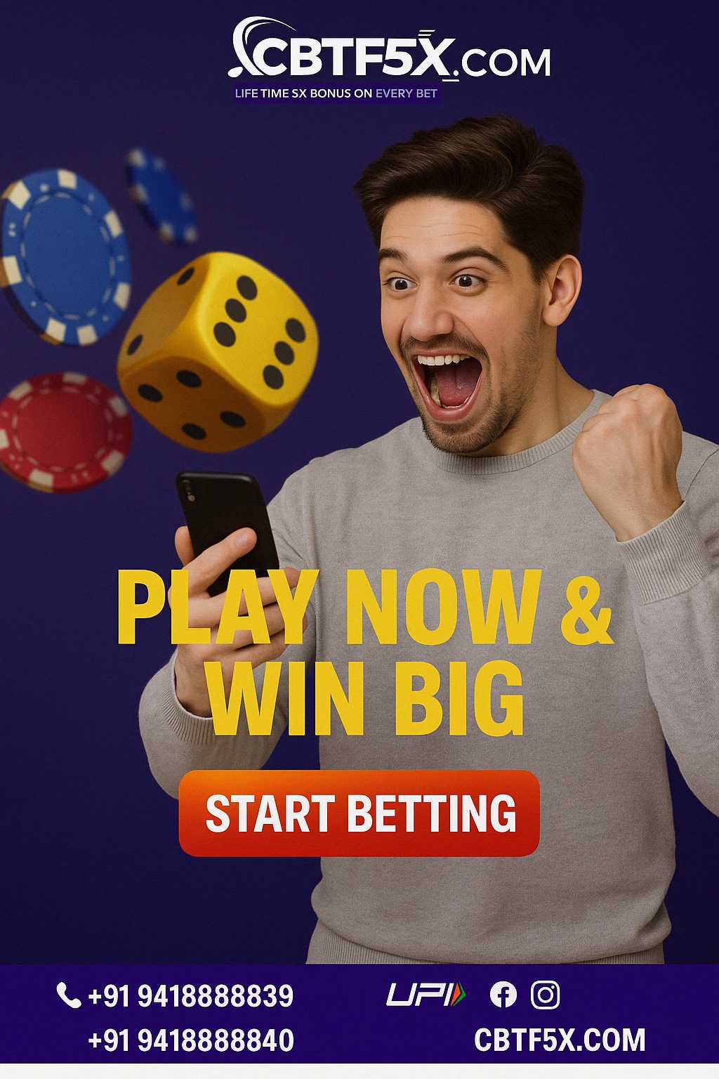 CBTF5X के साथ हर डिपॉज़िट पर पाएं लाइफटाइम 5% बोनस — ना कोई लिमिट, ना कोई एक्सपायरी! जितना ज़्यादा डिपॉज़िट, उतना ज़्यादा बोनस — अब हर दांव पर मिलेगी एक्स्ट्रा पावर और बड़ी जीत की गारंटी।